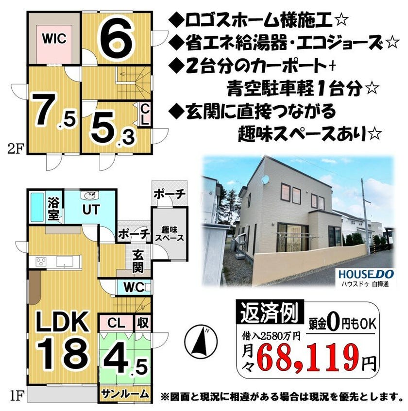 ●家事のしやすい回遊式動線☆南向きのサンルームあり☆